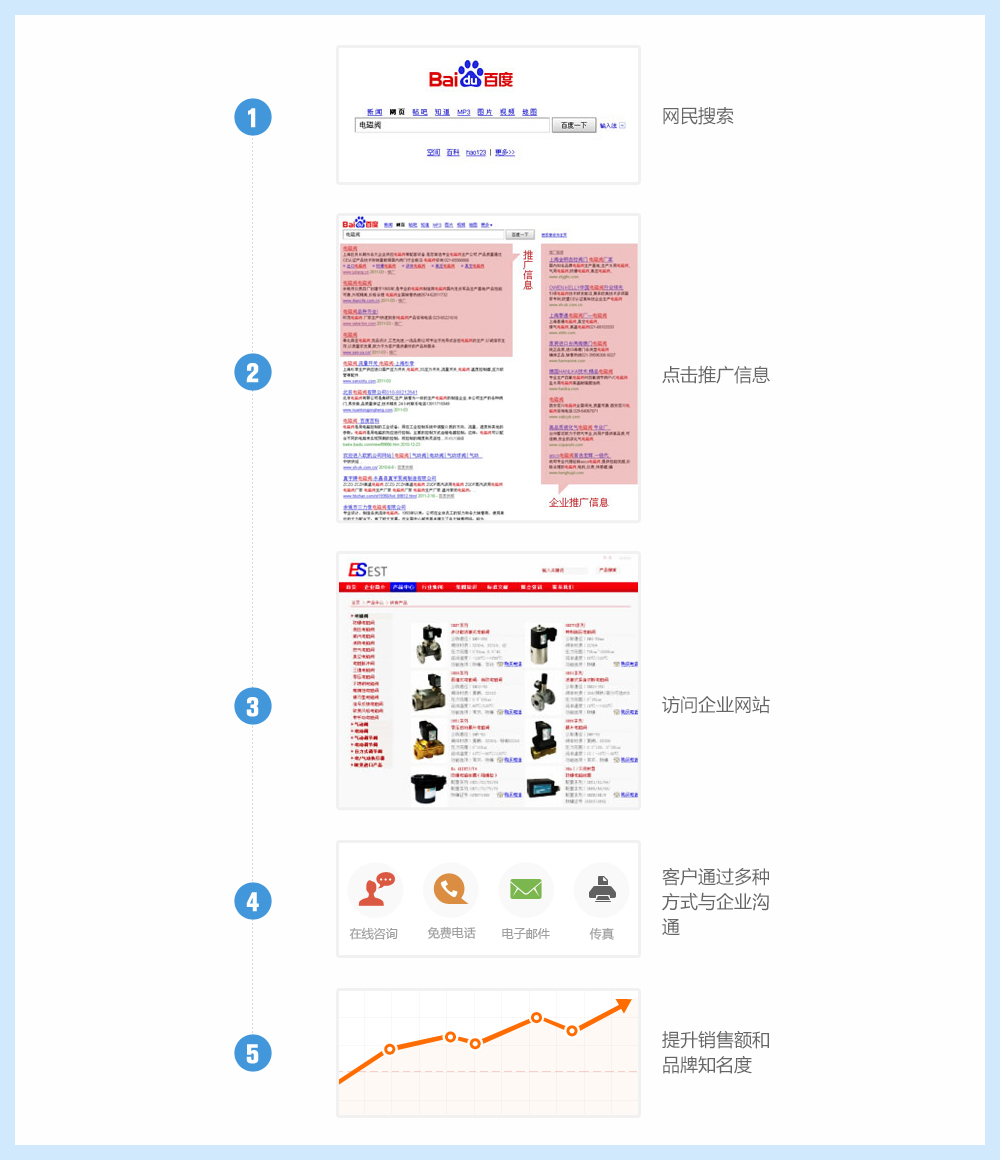 按效果付費的網(wǎng)絡(luò)營銷服務(wù),借助百度87%中國搜索引擎市場份額和60萬家聯(lián)盟網(wǎng)站,打造了鏈接億萬網(wǎng)民和企業(yè)的需求平臺,讓有需求的人便捷地找到適合自己的產(chǎn)品和服務(wù),也讓企業(yè)用少量投入就可以獲得大量潛在客戶,有效提升企業(yè)品牌影響力。